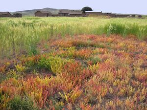 Es una planta pequeña, generalmente erguida o semi-postrada, que alcanza una altura de entre 20 y 60 cm (a veces hasta 90 cm), mucho menor que la quinua. Sus tallos y hojas presentan a menudo manchas de colores int...